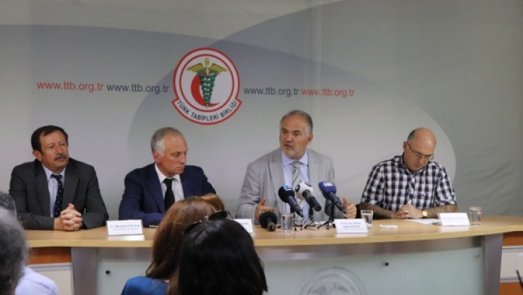 TTB Merkez Konseyi binasında 23 Temmuz 2018 tarihinde düzenlenen basın toplantısına, TTB Merkez Konseyi Başkanı Prof. Dr. Sinan Adıyaman, TTB Genel Sekreteri Dr. Bülent Nazım Yılmaz, TTB Merkez Konseyi Üyesi Prof. Dr. Çetin Atasoy ve TTB Hukuk Bürosu’ndan Avukat Mustafa Güler katıldı.