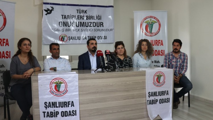 Türk Tabipleri Birliği (TTB) 2016-2018 Merkez Konseyi üyelerinin “Savaş Bir Halk Sağlığı Sorunudur” başlıklı açıklaması sebebiyle yargılandığı davadan hapis cezası çıkması üzerine Şanlıurfa emek meslek örgütleri “TTB ONURUMUZDUR” başlıklı ortak basın toplantısı düzenledi. Şanlıurfa Tabip Odası’nda 07 Mayıs Salı günü düzenlenlediğimiz açıklamaya Urfa İHD, TMMOB, Kesk Urfa Şubeleri, SES Urfa Şube, Urfa Eğitimsen Şube, Urfa Bes Şube, Urfa Barosu katıldı. Ayrıca açıklamaya çok sayıda hekim, sağlık çalışanı ve emek meslek örgütlerinin üye ve yöneticileri de destek verdi.